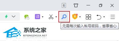 1、首先打开360安全浏览器,在浏览器右上方的插件栏中找到如下图所示的“登录管家”图标,使用鼠标点击该图标。