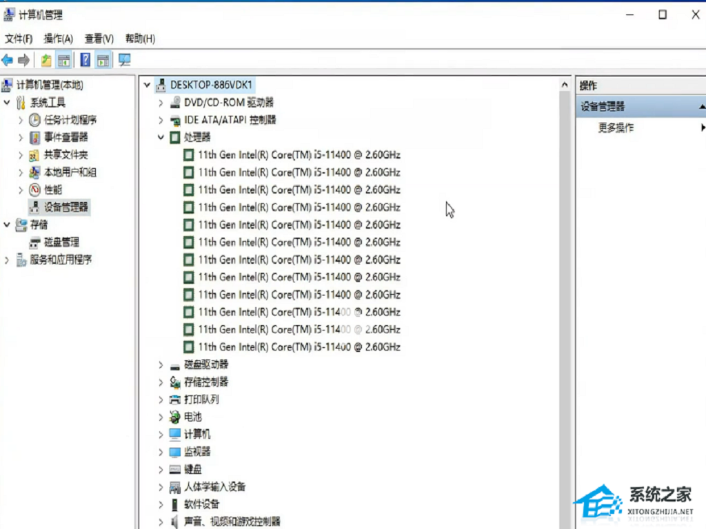 7. 重装前,可以通过计算机管理中的设备管理查看自己的处理器版本,再决定系统版本。