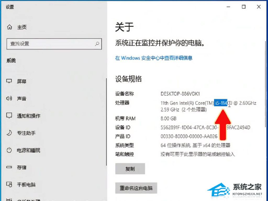 2. 例如这台电脑的处理器是 i5 14 代。