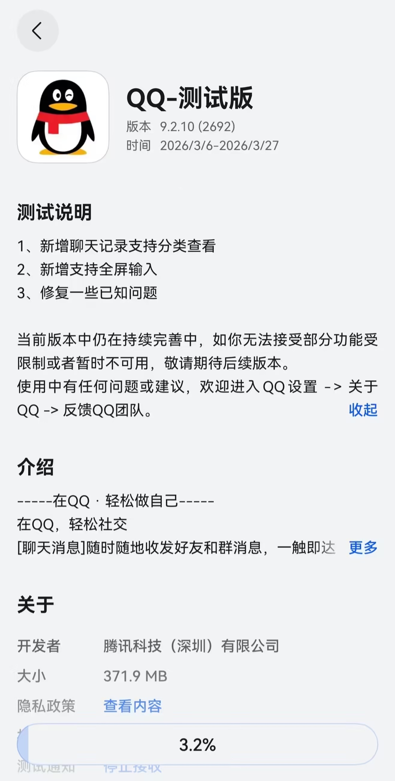 附 QQ 鸿蒙版 App 本次测试版本新特性如下: