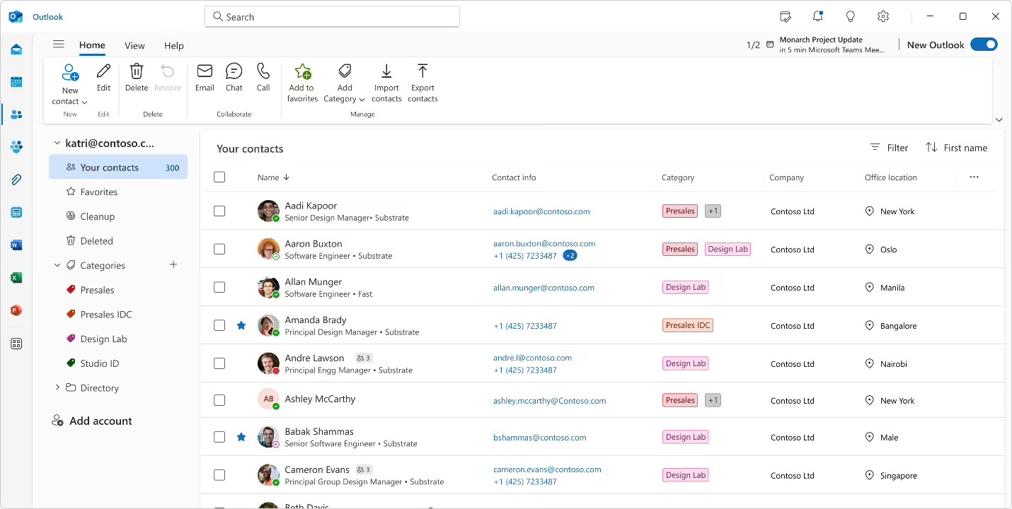 在底层架构上,新版围绕着全新的联系人体验,以性能为核心重新构建。经过微软内部数千名用户的深度测试,新版在处理庞大联系人列表时依然能保持极高的稳定性与响应速度。更重要的是,无论是桌面端、网页端还是 Teams,用户都将获得完全一致的现代化操作体验。
