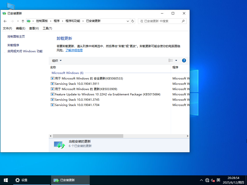 1. 已更新系统补丁至 2025 年 11 月 11日,作为 Windows 10 ESU 计划的首个补丁,KB5068781 涵盖了微软“补丁星期二”的安全更新,总共修复了63个安全漏洞,其中包括1个正在被积极利用的提权漏洞。